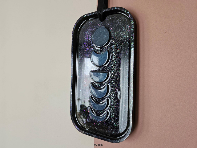 W166: Kleur: Zwart met Chameleon glitters, maantjes: Chameleon Groen/Paars